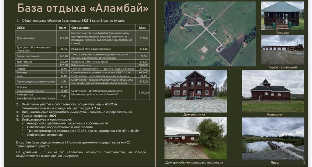 Продается база отдыха "Аламбай" «Аламбай» – это не просто место отдыха, это инвестиция в здоровье и благополучие вашей команды. Здесь комфорт и уединение сочетаются с возможностями для активного отдыха и релаксации. Охота, рыбалка, пешие и конные прогулки по живописным окрестностям – каждый найдет занятие по душе.